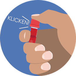 Rote Kappe vom Röhrchen durch Drehen entfernen.