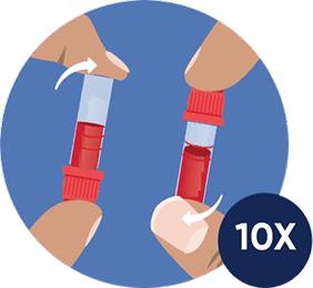 Röhrchen 10× vorsichtig umdrehen um das Blut zu mischen. Leicht antippen oder schnippen – nicht schütteln.