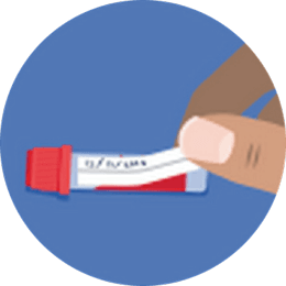Probenetikett vom Einsendebogen abziehen und seitlich auf das Röhrchen kleben.
